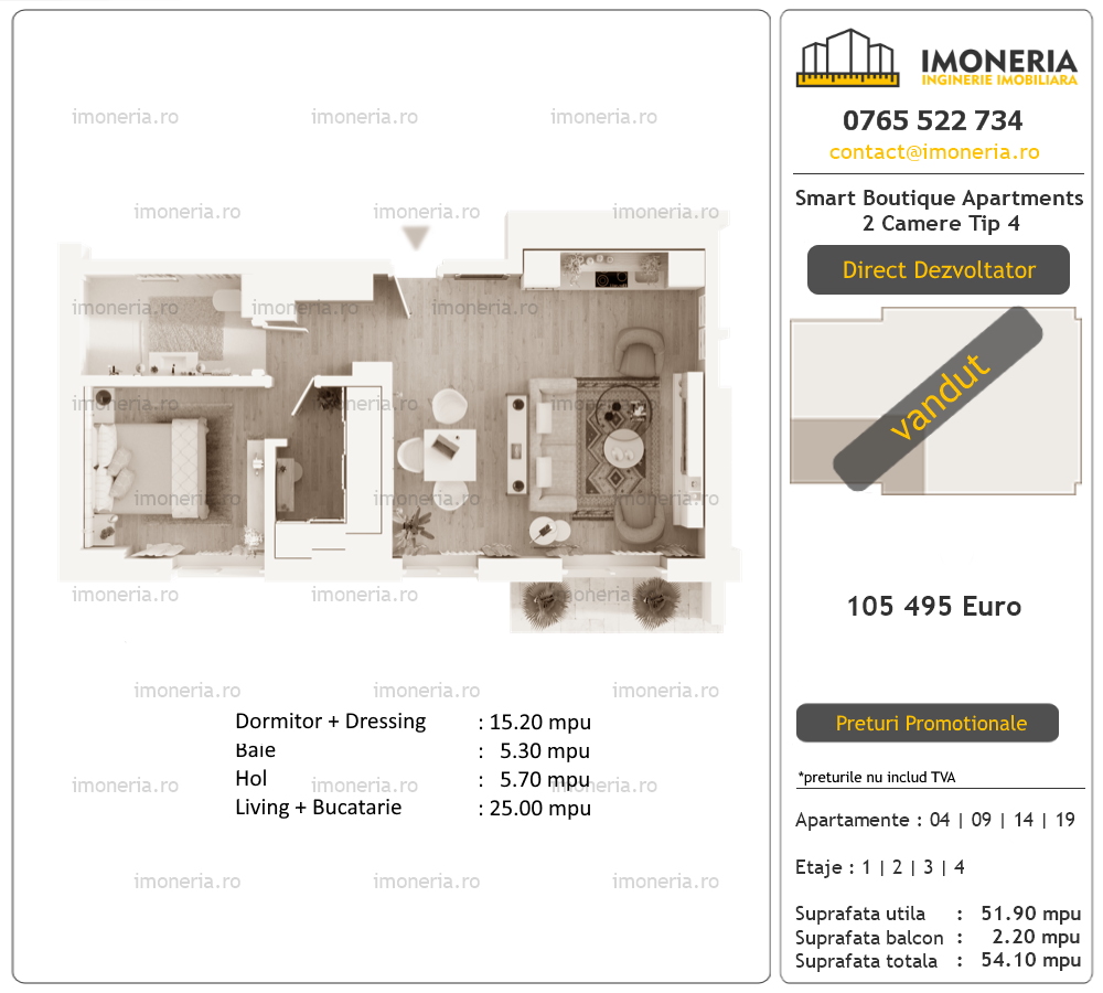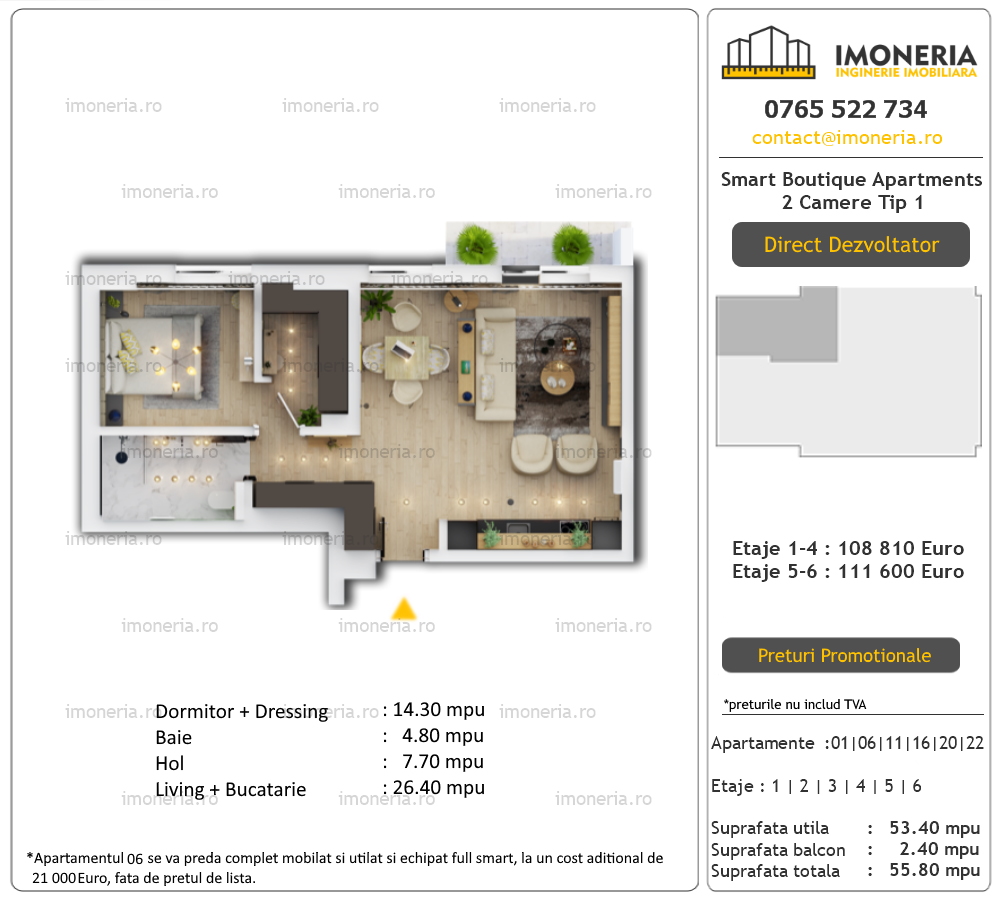 Va prezentam oferta completa de apartamente noi Smart Boutique Apartments apartamente  cu 2 camere
